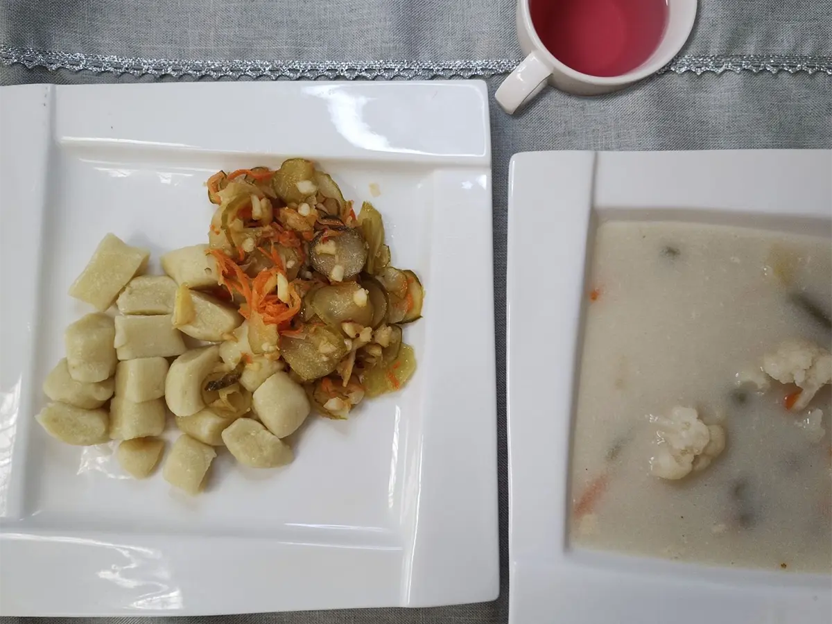 surówka z ogórków kwaszonych z olejem rzepakowym | ziemniaki gotowane | ziemniaki gotowane | ziemniaki gotowane | |||||||||