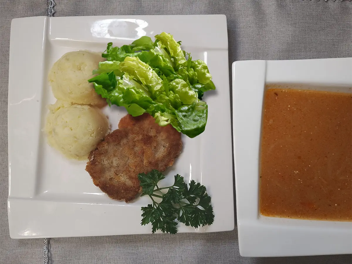 | smażony sznycel wieprzowy w grzankach | gotowany zraz drobiowy w sosie jarzynowym | gotowany zraz drobiowy w sosie jarzynowym | gotowany zraz drobiowy w sosie jarzynowym | |||||||||