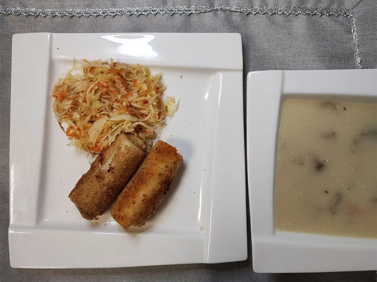 smażone krokiety z mięsem wieprzowym | gotowany biały makaron z mięsem drobiowym i warzywami | gotowany brązowy makaron z mięsem drobiowym i warzywami | gotowany biały makaron z mięsem drobiowym i warzywami | |||||||||