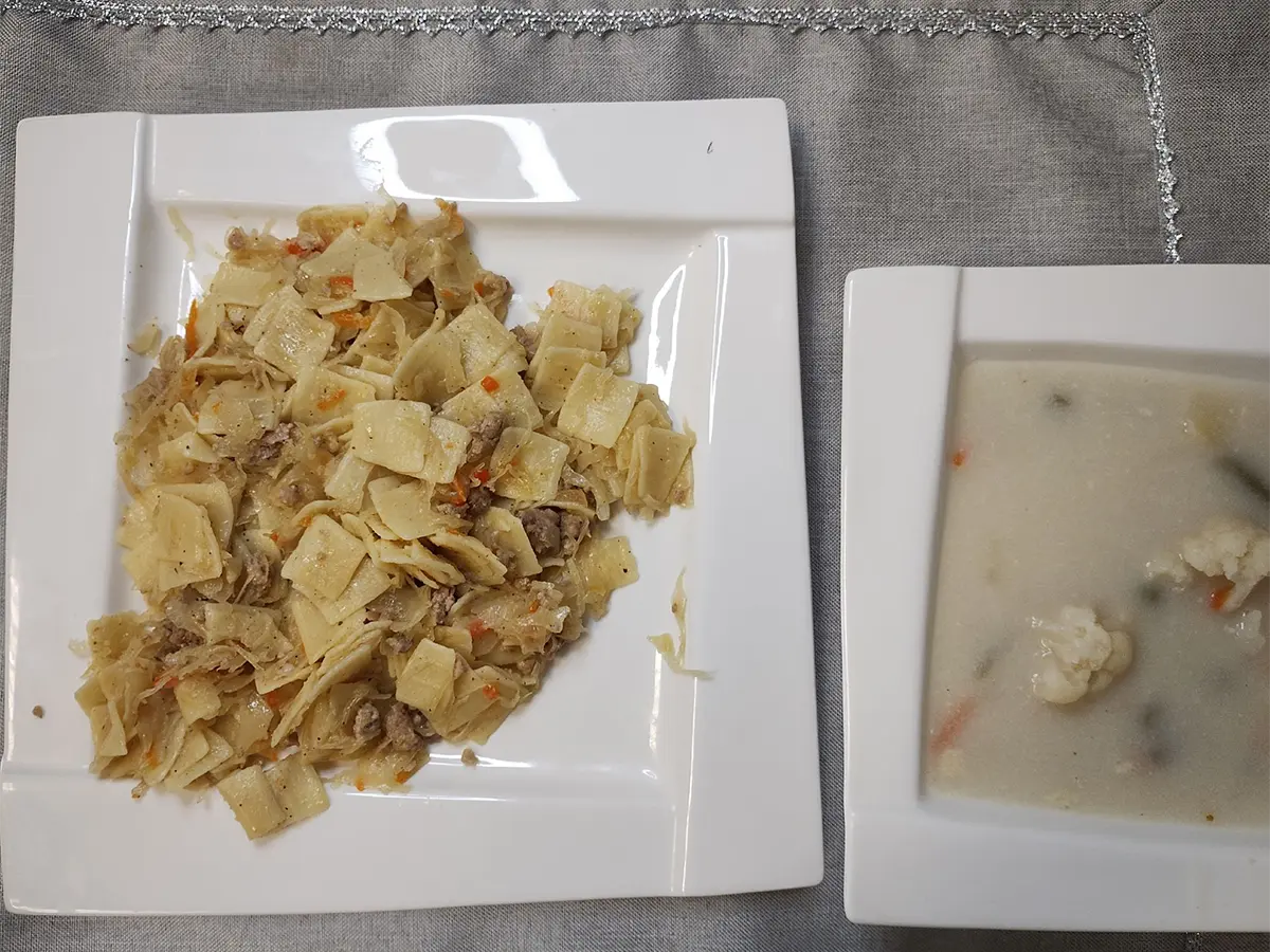 gotowane łazanki z mięsem wieprzowym i kapustą kiszoną |