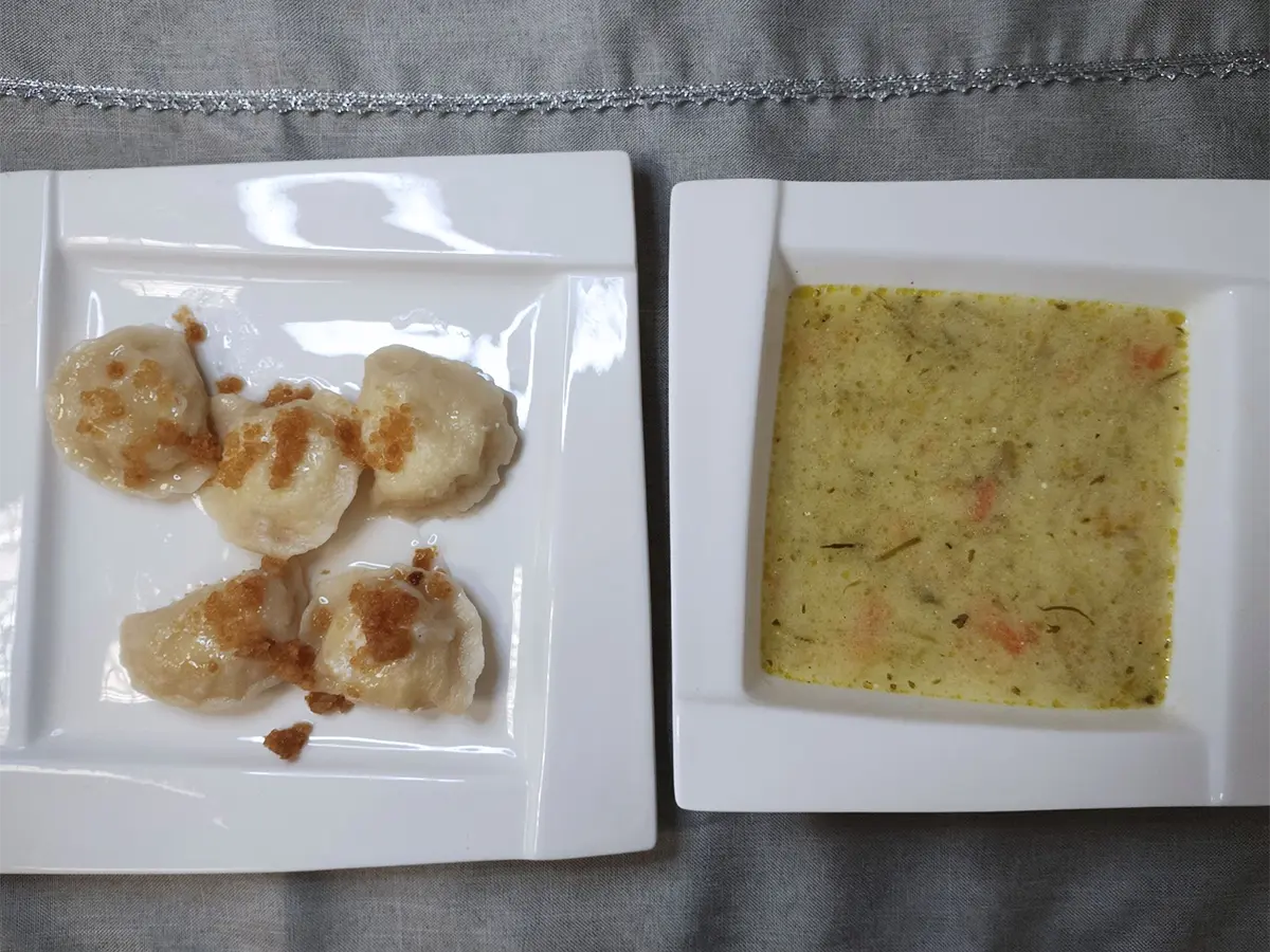 gotowane pierogi ruskie | gotowany biały makaron z serem twarogowym | gotowany brązowy makaron z serem twarogowym | gotowany biały makaron z serem twarogowym | |||||||||