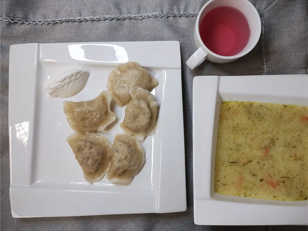 | gotowane pierogi z kaszą gryczaną i serem twarogowym ze śmietaną |