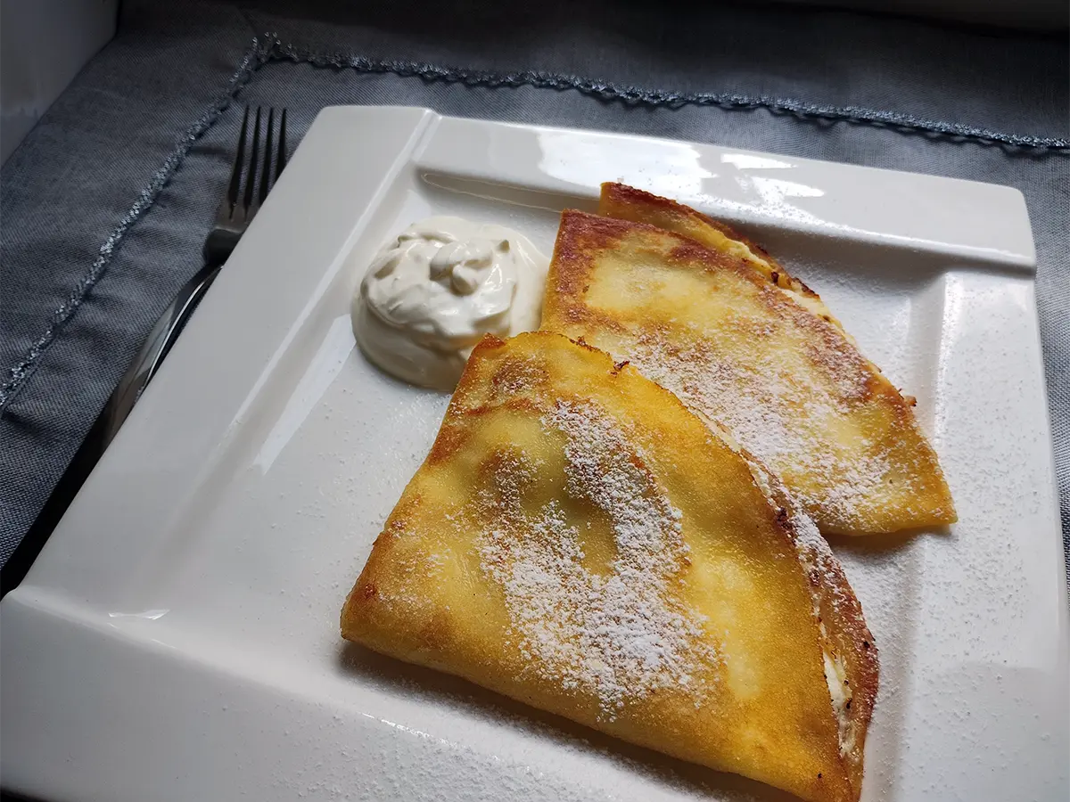 smażone naleśniki z twarogiem, śmietaną i cukrem pudrem | ryż z sosem jabłkowym | ryż z sosem jabłkowym | ryż z sosem jabłkowym | |||||||||