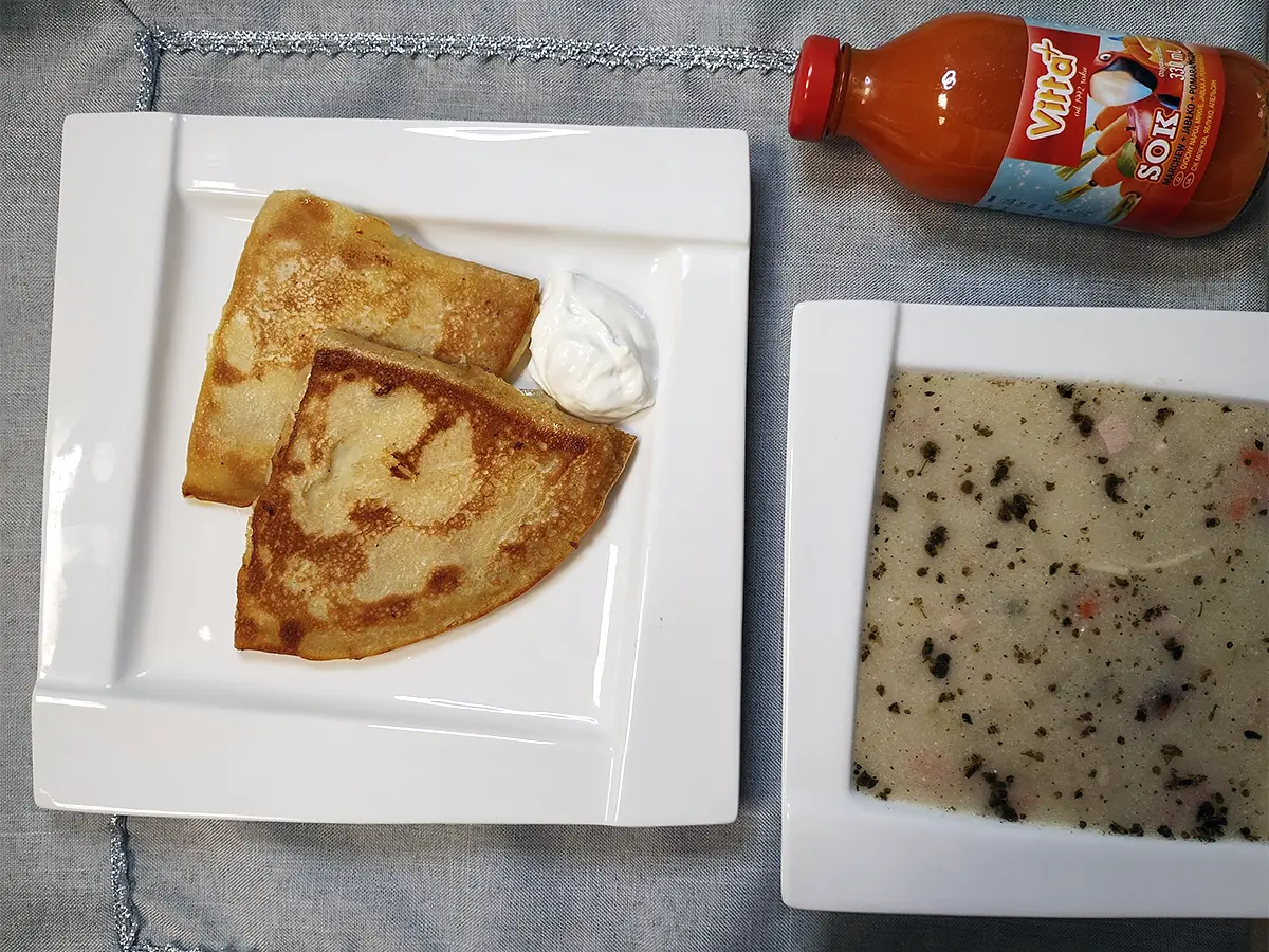 smażone naleśniki ze śmietaną | gotowany ryż biały z sosem jabłkowym | gotowany ryż brązowy z sosem jabłkowym | gotowany ryż biały z sosem jabłkowym | |||||||||