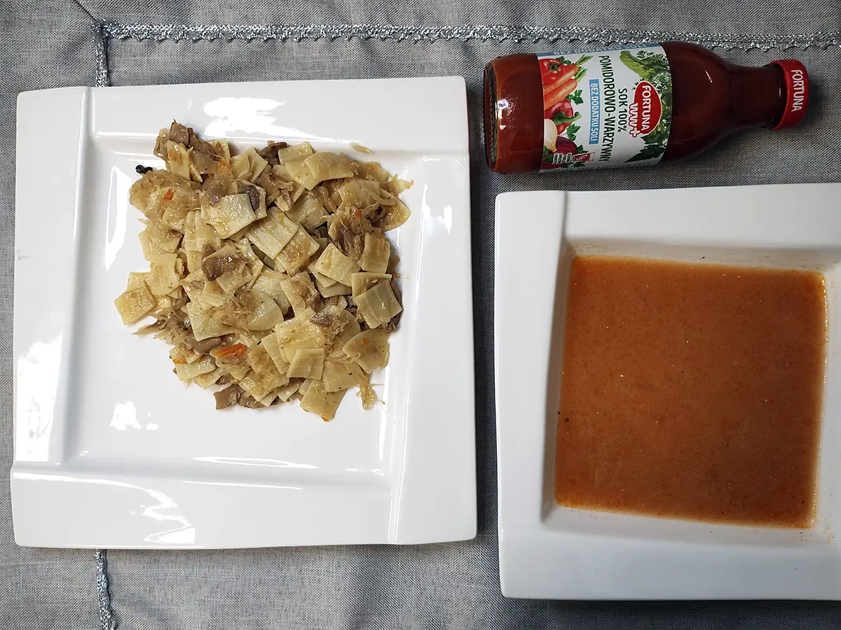 | gotowane łazanki z kapustą i pieczarkami | gotowany biały ryż z sosem jabłkowym | gotowany brązowy ryż z sosem jabłkowym | gotowany biały ryż z sosem jabłkowym | |||||||||