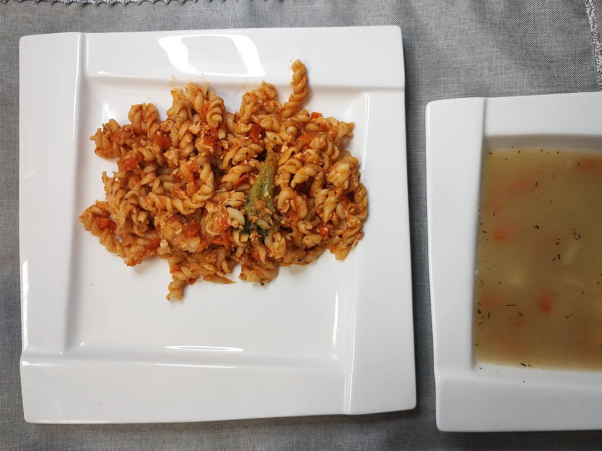 smażony kotlet mielony | gotowany biały makaron z mięsem i warzywami | gotowany makaron pełnoziarnisty z mięsem i warzywami | gotowany biały makaron z mięsem i warzywami | |||||||||