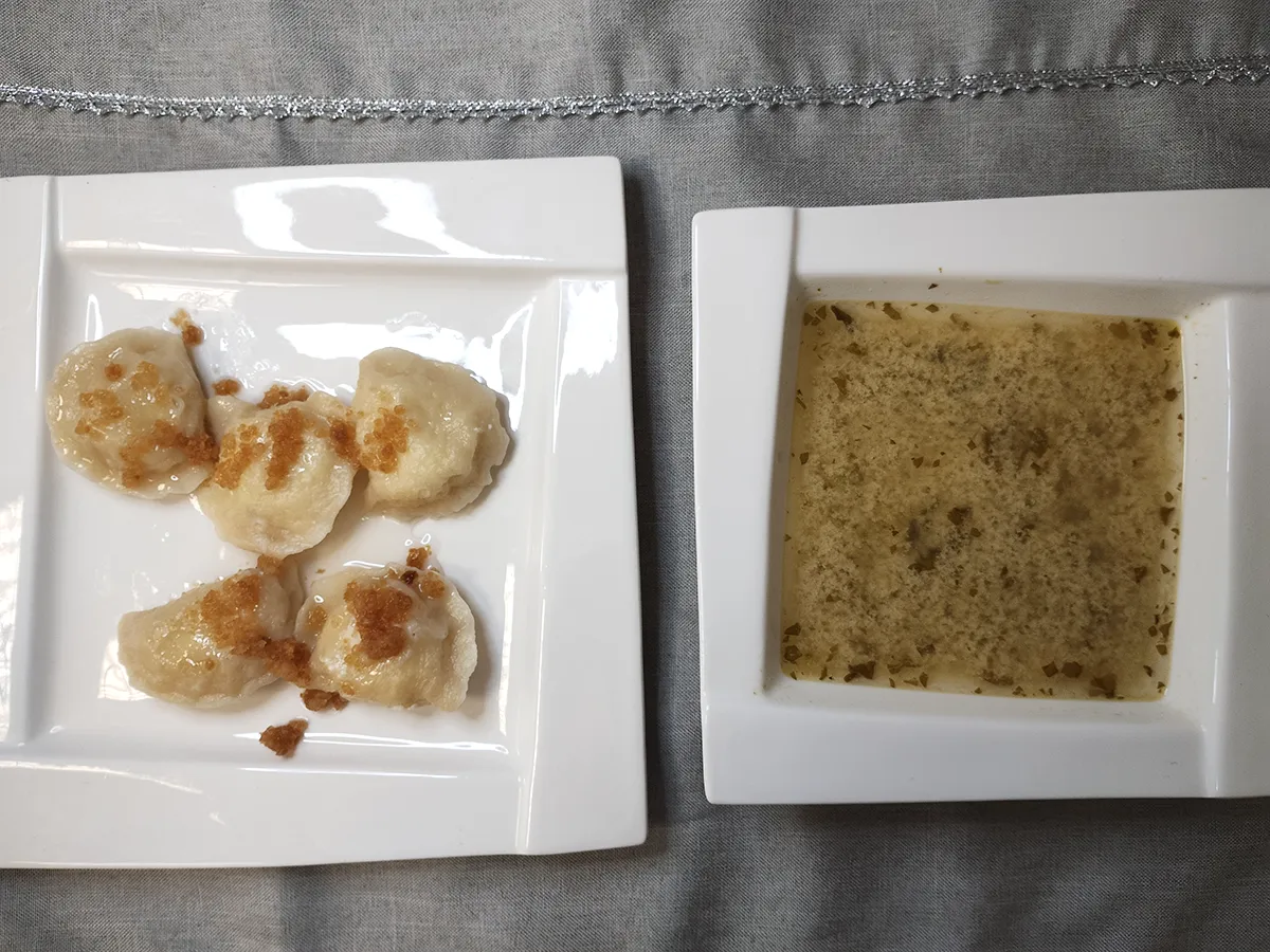 gotowane pierogi ruskie ze skwarkami | gotowany biały ryż z sosem jabłkowym | gotowany ryż pełnoziarnisty z sosem jabłkowym | gotowany biały ryż z sosem jabłkowym | |||||||||