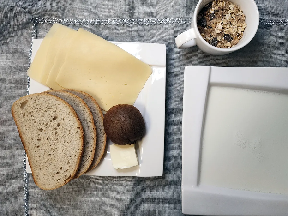 chleb pszenno- żytni, masło ekstra | bułka pszenna, masło ekstra | chleb żytni, masło ekstra | bułka pszenna, masło ekstra | |||||||||