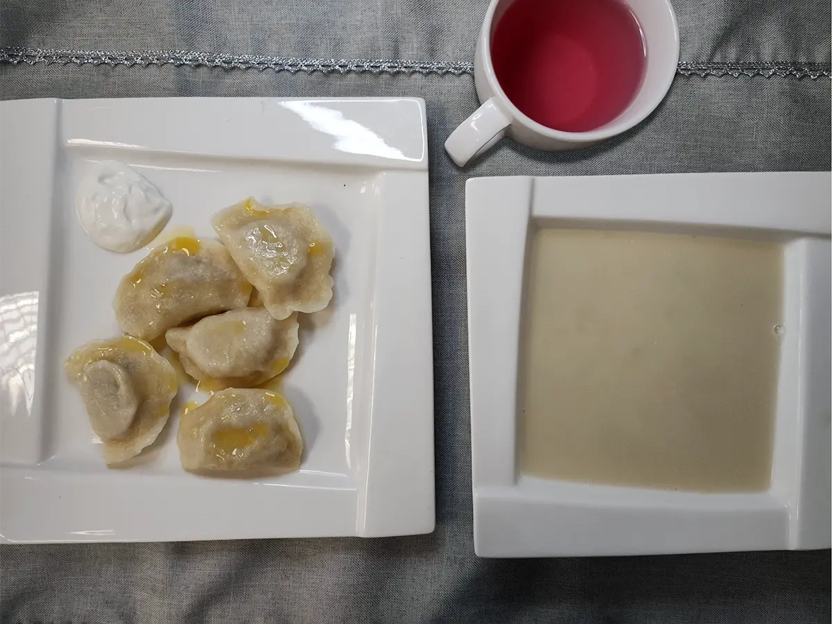 gotowane pierogi ruskie | gotowany biały makaron z serem twarogowym | gotowany brązowy makaron z serem twarogowym | gotowany biały makaron z serem twarogowym | |||||||||