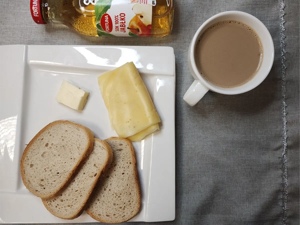 chleb pszenno- żytni, masło ekstra | bułka pszenna, masło ekstra | chleb żytni, masło ekstra | bułka pszenna, masło ekstra | |||||||||