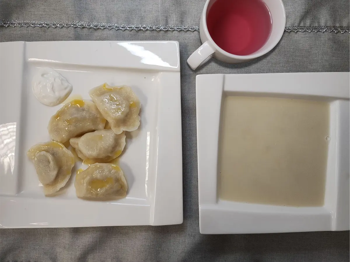 gotowane pierogi z serem twarogowym i kaszą gryczaną ze śmietaną | gotowany biały ryż z sosem jabłkowym | gotowany ryż brązowy z sosem jabłkowym | gotowany biały ryż z sosem jabłkowym | |||||||||