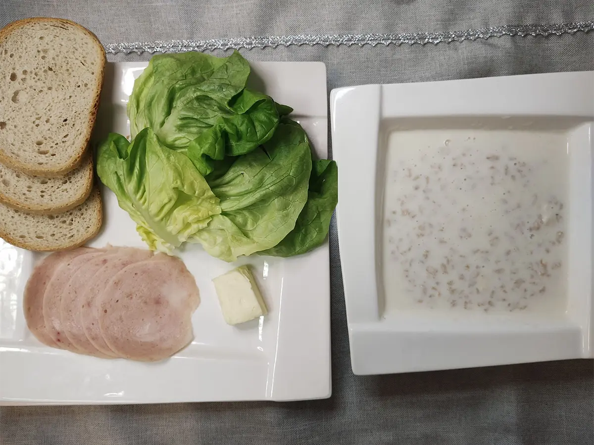 | chleb pszenno- żytni, masło ekstra | bułka pszenna, masło ekstra | chleb żytni, masło ekstra | bułka pszenna, masło ekstra | |||||||||