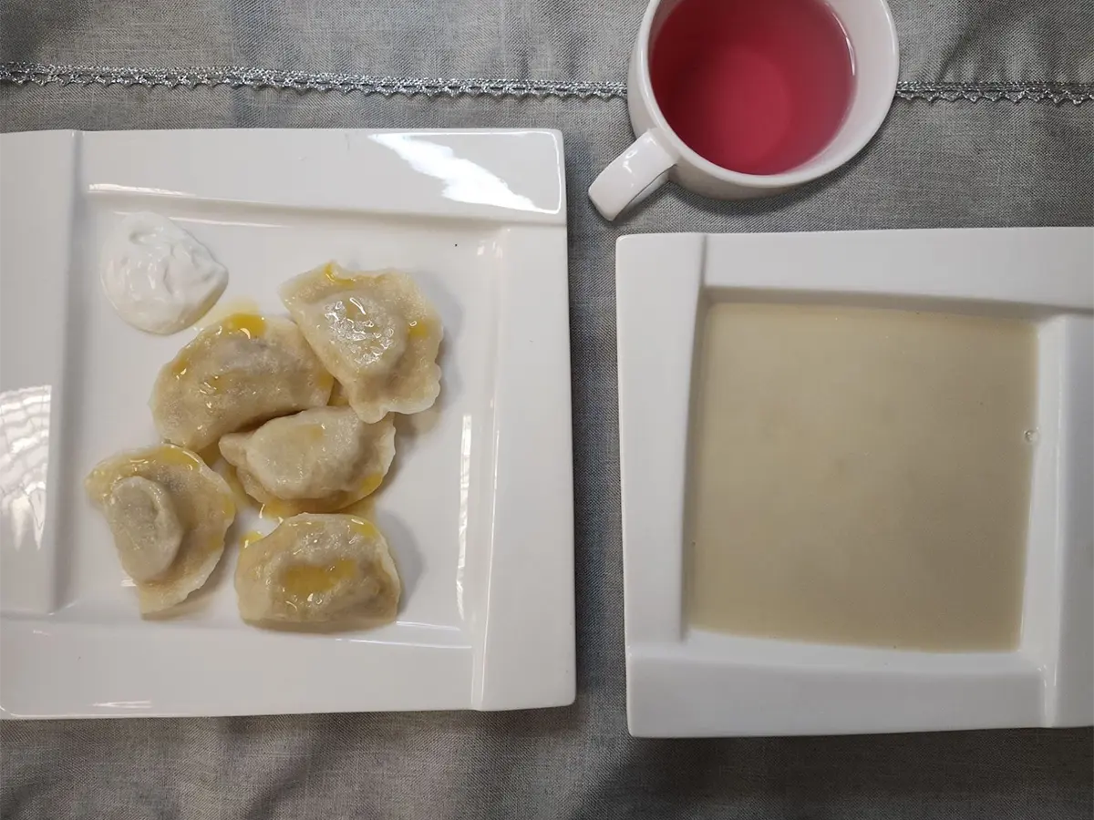 gotowane pierogi ruskie | gotowany biały ryż z sosem jabłkowym | gotowany brązowy ryż z sosem jabłkowym | gotowany biały ryż z sosem jabłkowym | |||||||||