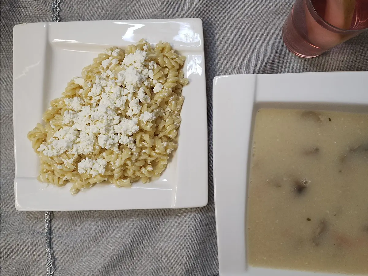 gotowany brązowy makaron z serem twarogowym i masłem |