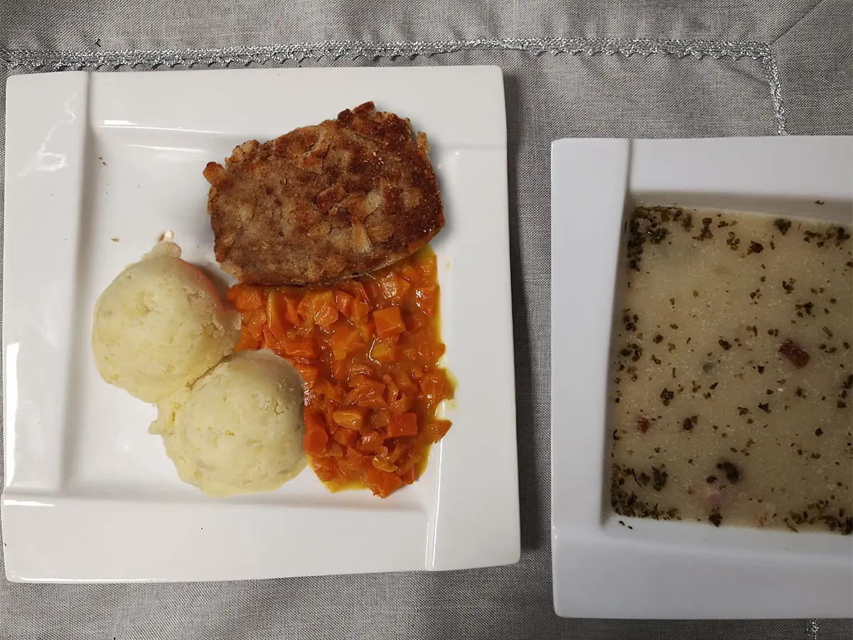 smażony sznycel wieprzowy w grzankach | gotowane paluszki drobiowe z ziołami | gotowane paluszki drobiowe z ziołami | gotowane paluszki drobiowe z ziołami | |||||||||