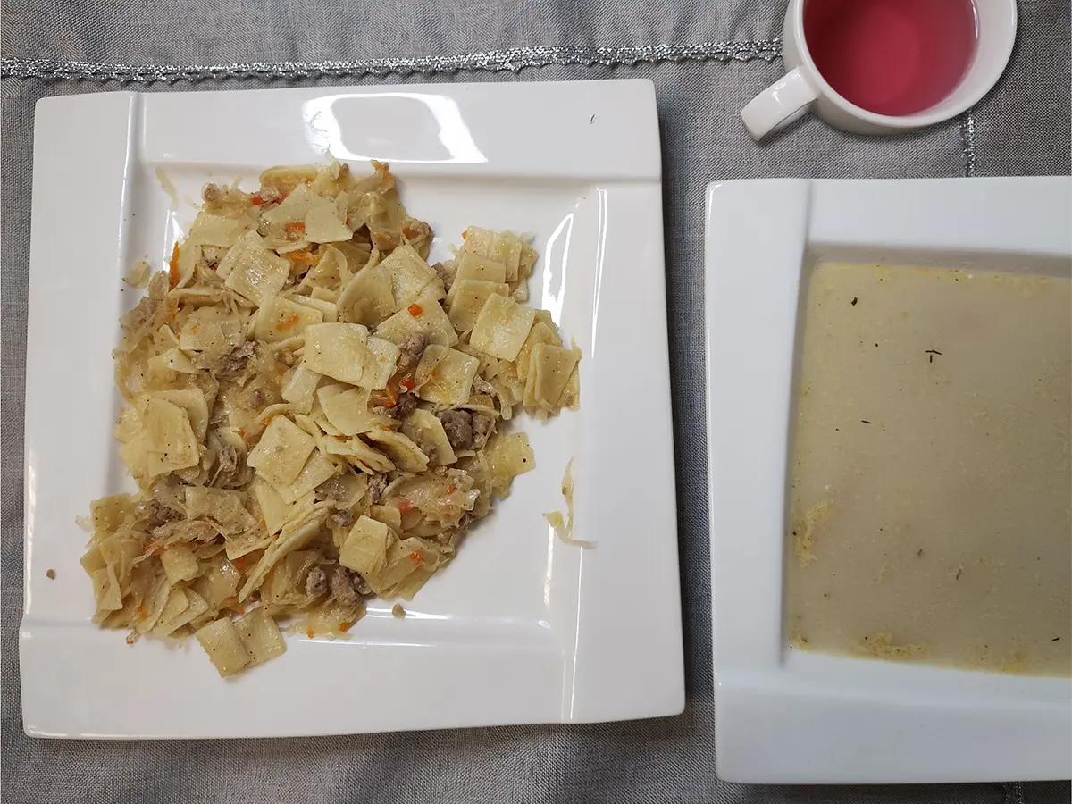 gotowane łazanki z mięsem wieprzowym i kapustą kwaszoną |